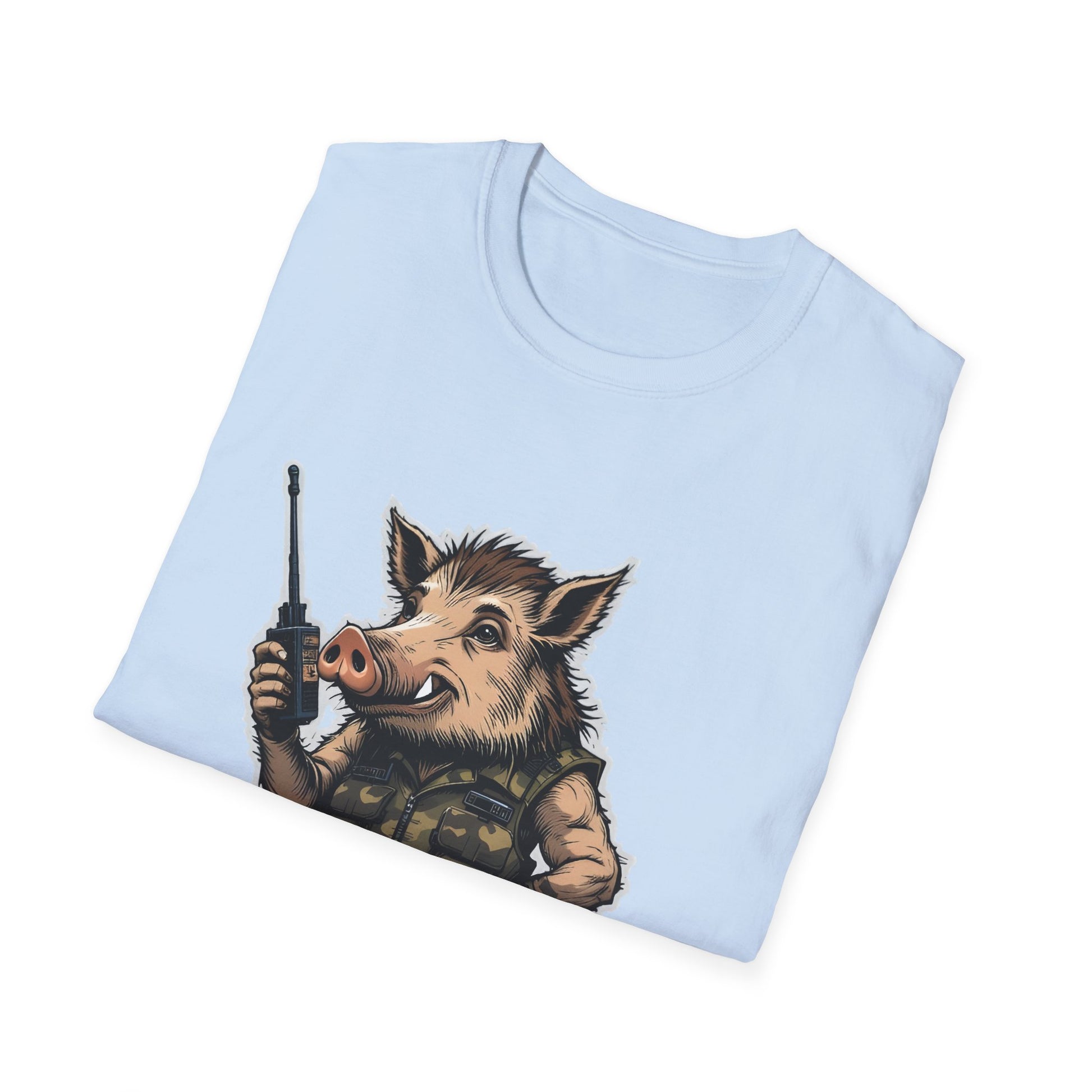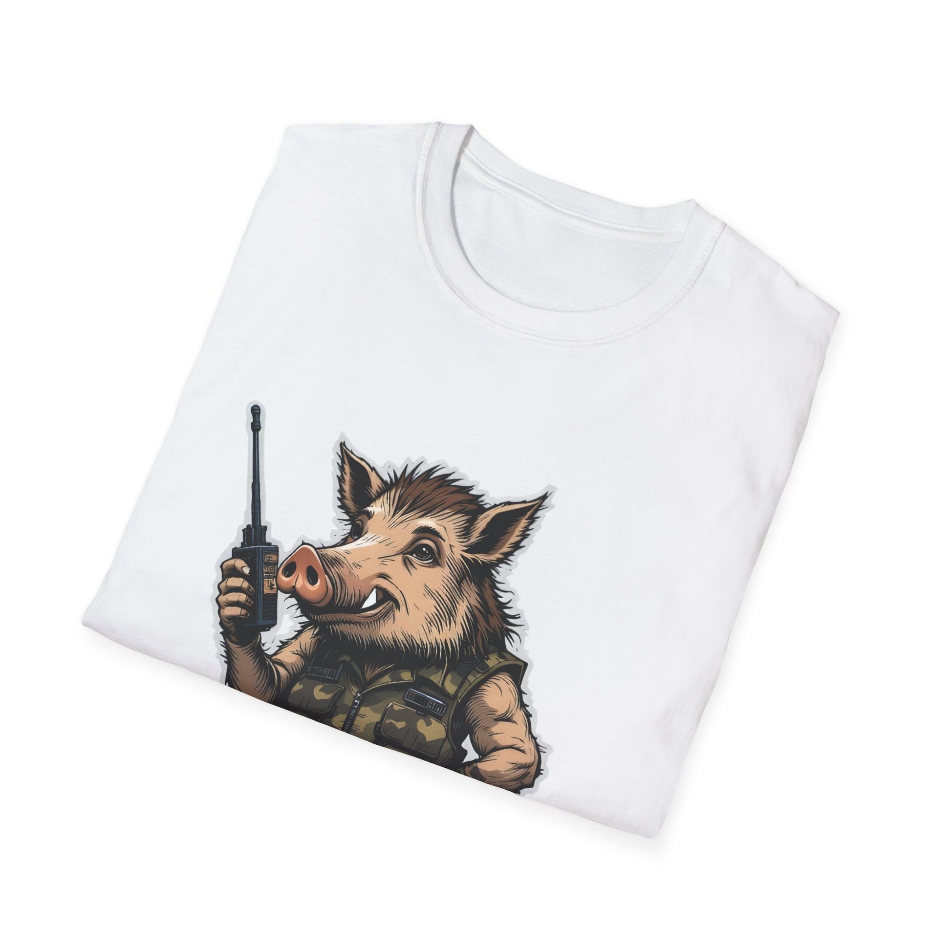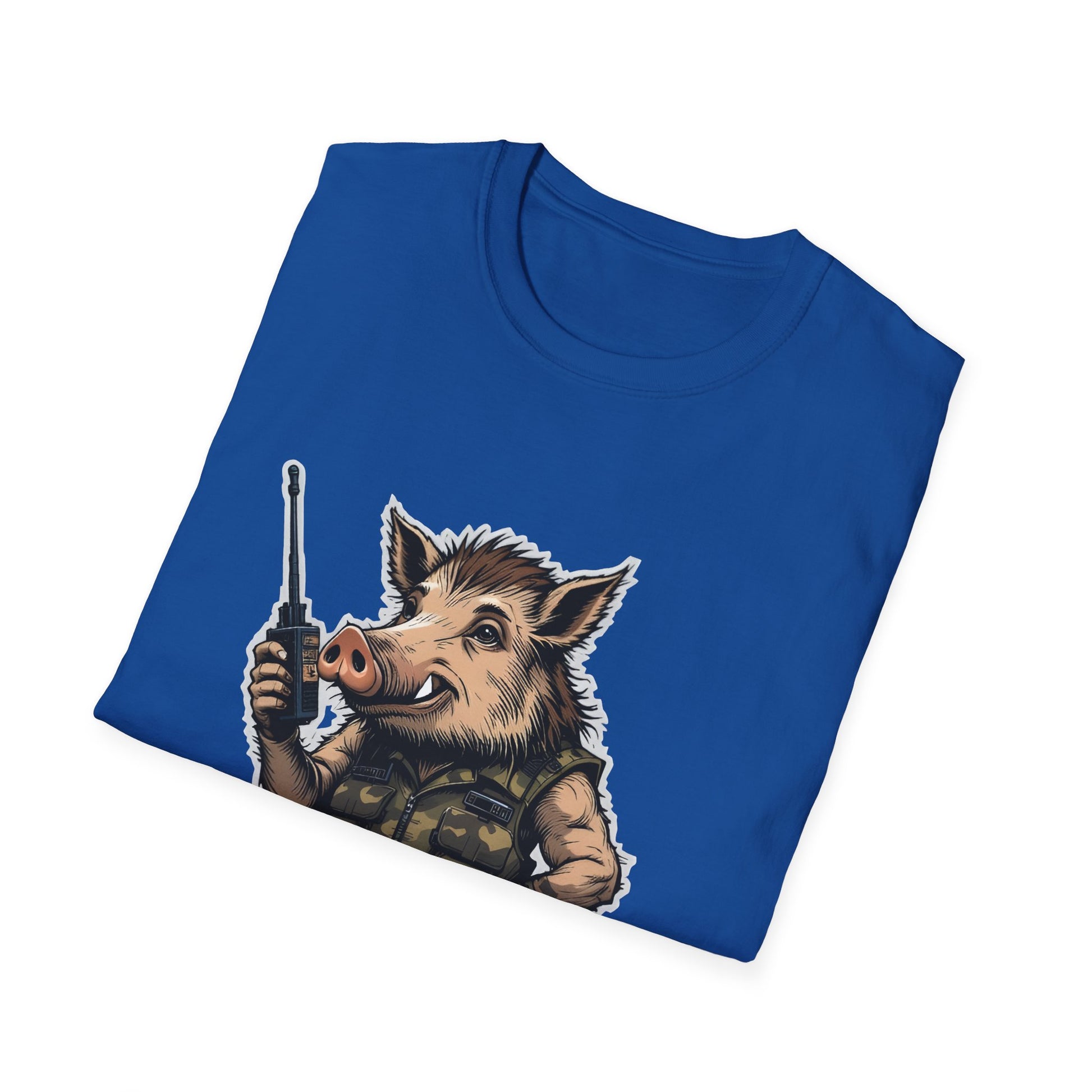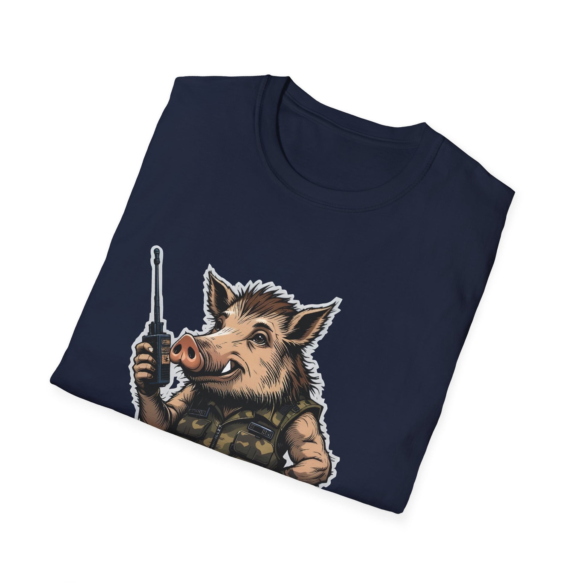 Wenn du im Wald unterwegs bist, solltest du wissen, wer dort wirklich die Kontrolle hat. Dieses Design zeigt ein entschlossenes Wildschwein mit taktischer Weste und Funkgerät – bereit für die nächste Mission.