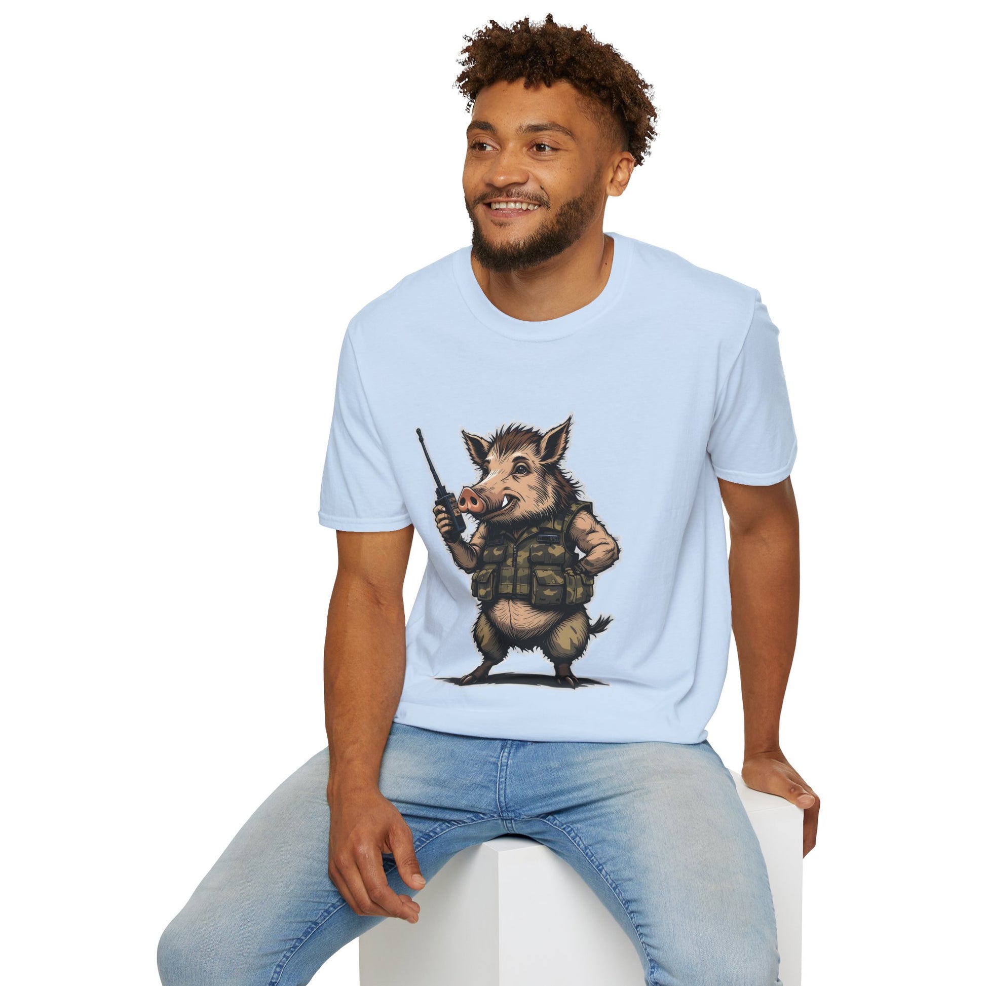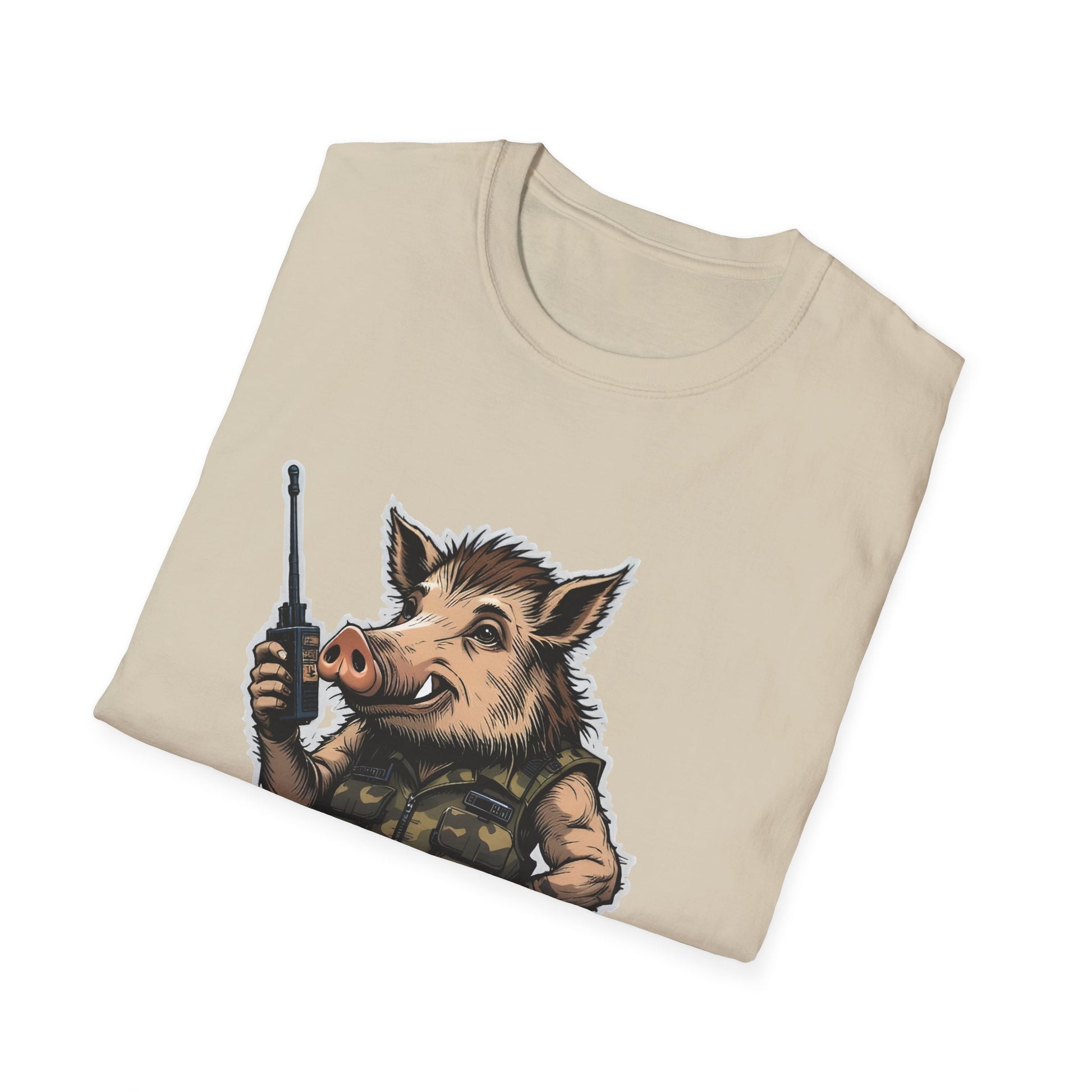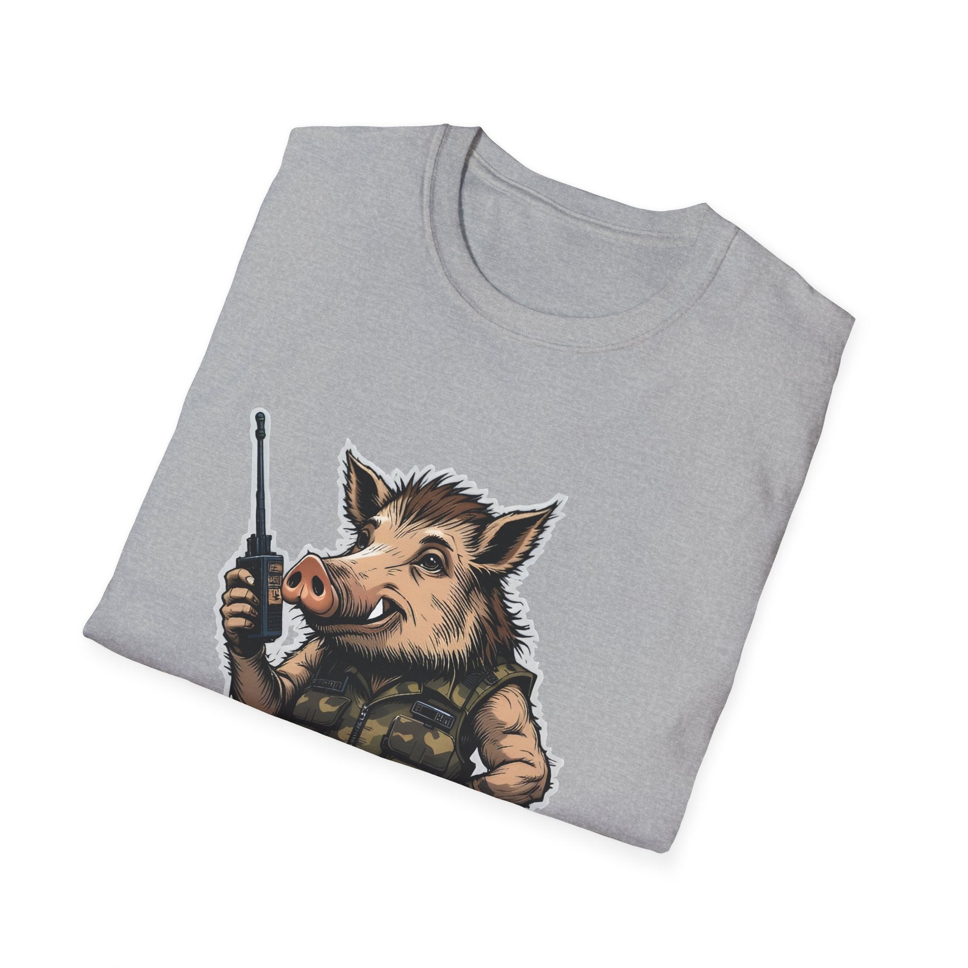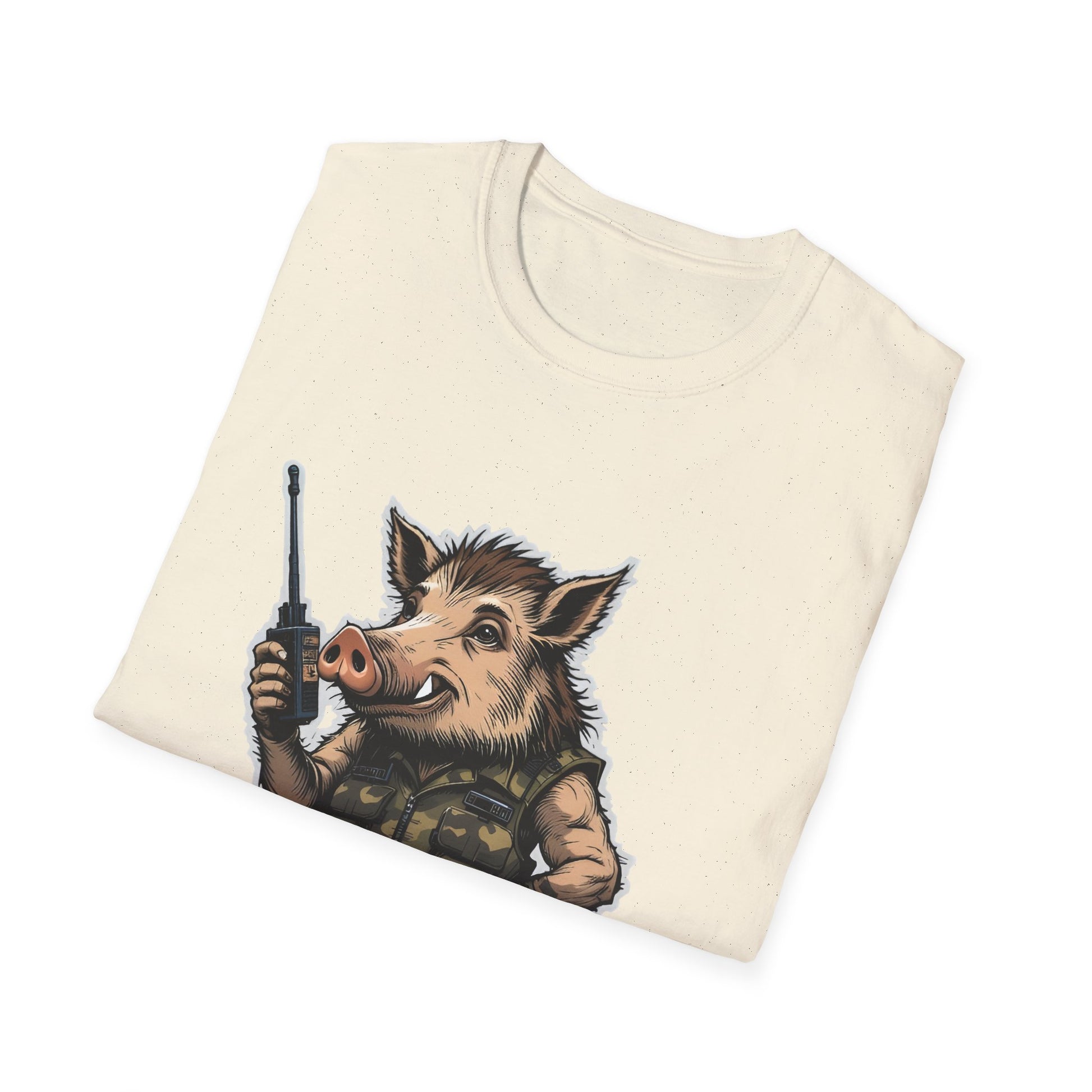 Wenn du im Wald unterwegs bist, solltest du wissen, wer dort wirklich die Kontrolle hat. Dieses Design zeigt ein entschlossenes Wildschwein mit taktischer Weste und Funkgerät – bereit für die nächste Mission.